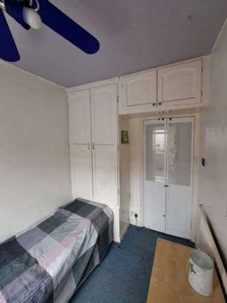 Front single bedroom with built in cupboards, radiator and UPVC double glazed window