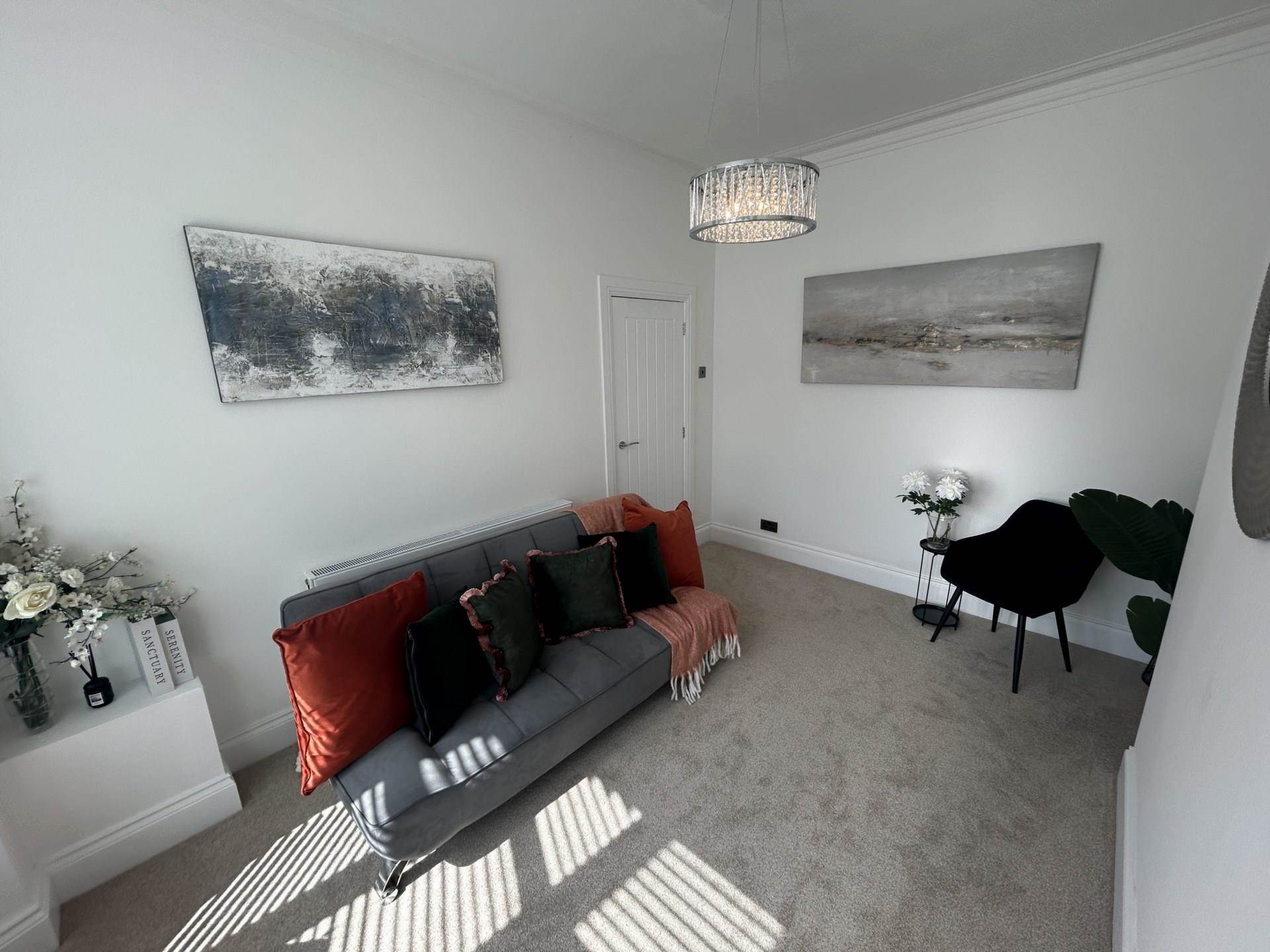 Front reception room with newly fit carpets, radiator and UPVC double glazed bay window.