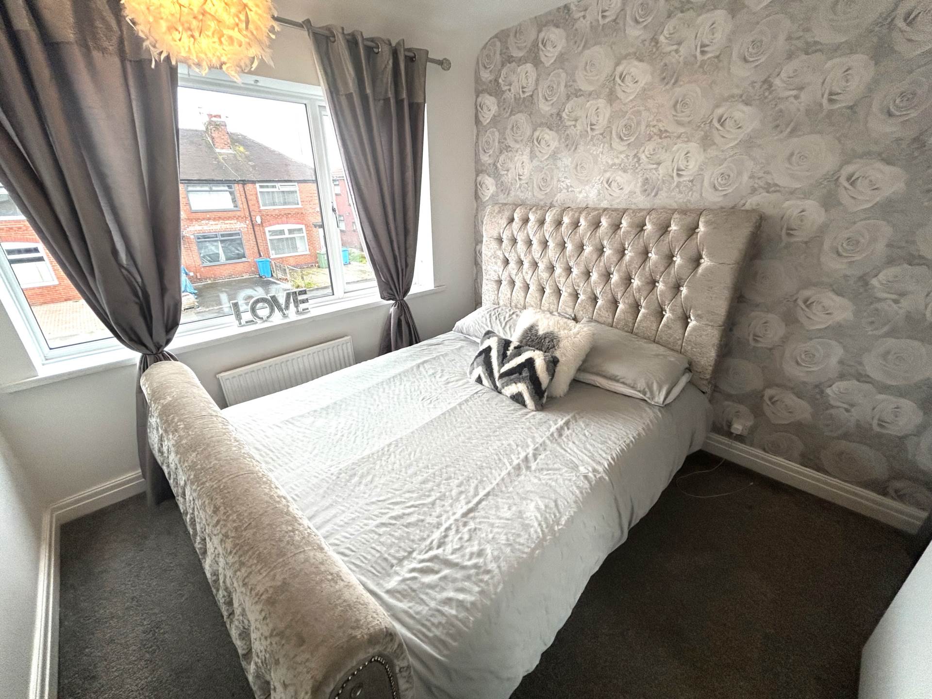 Rear double bedroom with radiator and UPVC double glazed window.